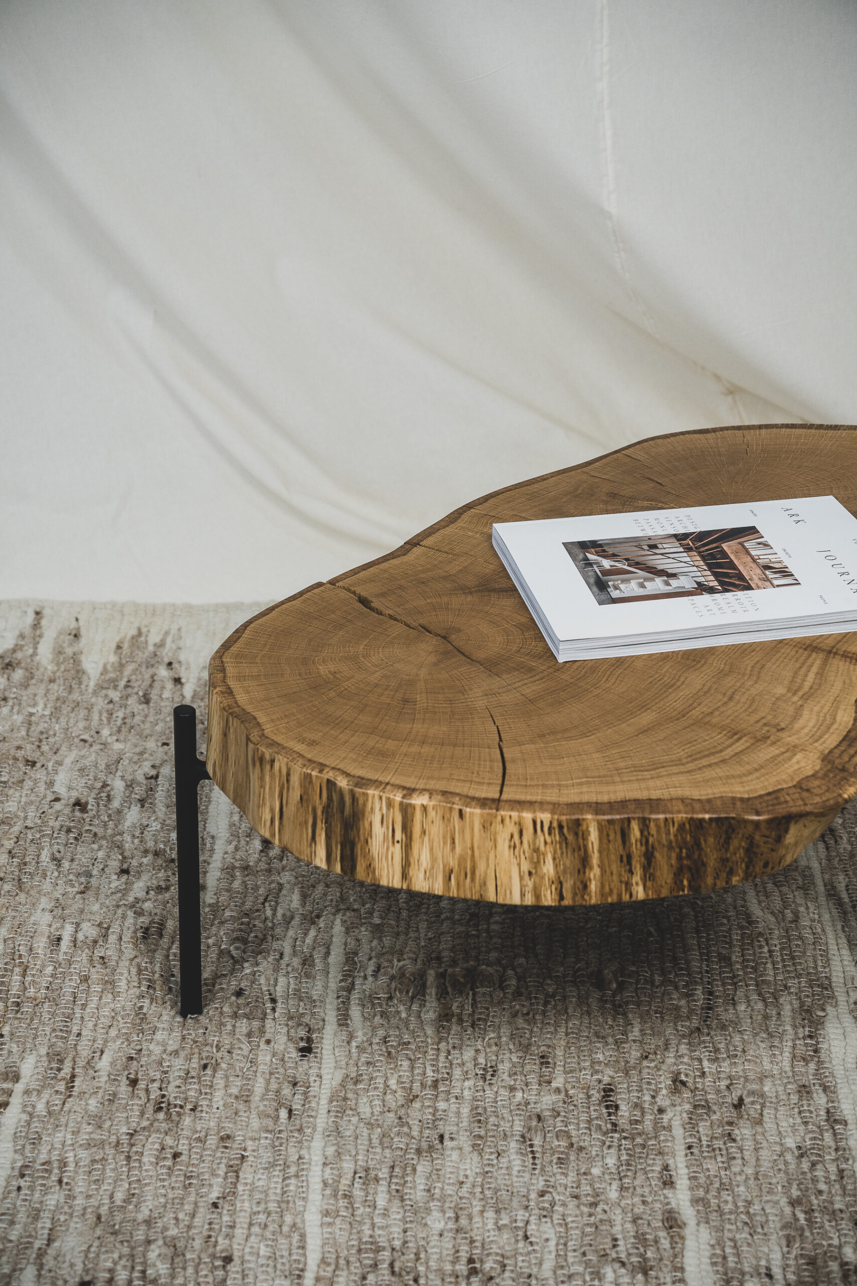 Ten wyjątkowy stolik kawowy wykonany jest z litego drewna dębowego, wykończonego naturalnym olejowoskiem, który podkreśla piękno sęków i słojów, jednocześnie chroniąc powierzchnię. Blat w organicznym, nieregularnym kształcie nadaje mu unikalnego charakteru, a solidne metalowe nogi w subtelnym, nowoczesnym stylu zapewniają stabilność i trwałość. To doskonały wybór do jasnych i neutralnych wnętrz, zwłaszcza w stylu skandynawskim lub boho. Stolik łączy w sobie funkcjonalność i estetykę, będąc zarówno praktycznym meblem, jak i efektowną dekoracją w Twoim salonie.